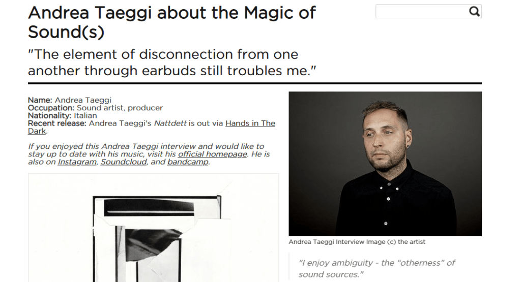 Clot Magazine “OOH-Sounds presents Andrea Taeggi”